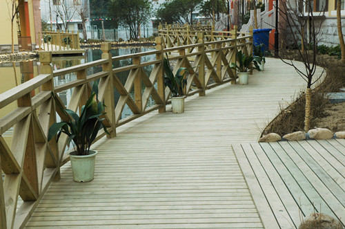 本公司采用防腐處理新技術(shù),經(jīng)專業(yè)防腐處理后,具有耐磨損,紋理清晰美觀,易保養(yǎng)等特點,同時也極具親和力。 我們的產(chǎn)品能抵抗白蟻的侵蝕和孢子真菌的生長,包括水中生物的寄宿和其他昆蟲的產(chǎn)生和繁殖,正常使用下,產(chǎn)品壽命在30年以上。